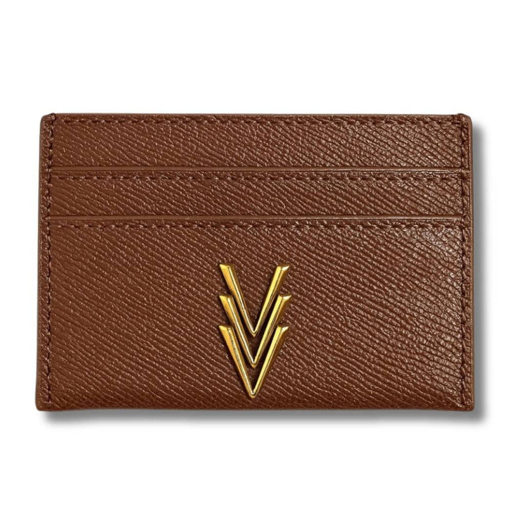Introducing the Multi Card Holder with Iconic Logo Constructed with Vegan Leather—a sleek essential from Vago's Tami2 collection. Crafted from smooth vegan leather, the Multi Card Holder with Iconic Logo Constructed with Vegan Leather features a compact slot design and the iconic Vago logo. Practical and chic, the Multi Card Holder with Iconic Logo Constructed with Vegan Leather holds up to four cards, perfect for a minimalist lifestyle. With antique gold hardware and luxe lining, the Multi Card Holder with Iconic Logo Constructed with Vegan Leather blends elegance with function. Measuring 4" by 3", the Multi Card Holder with Iconic Logo Constructed with Vegan Leather is your go-to for stylish organization. Elevate your everyday with the Multi Card Holder with Iconic Logo Constructed with Vegan Leather.