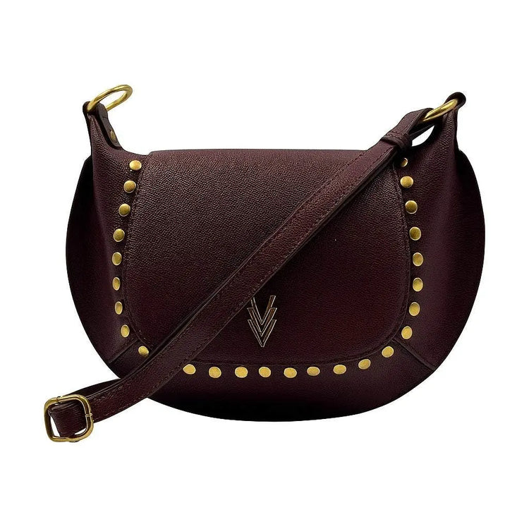 Studded Satchel Purse – Vegan Leather with Adjustable Strap and Flap Closure