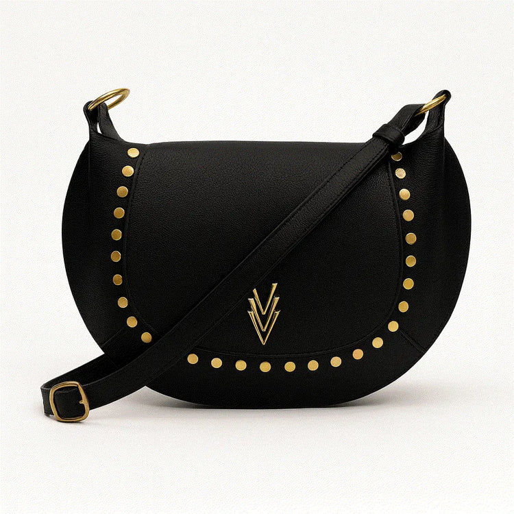 The Studded Satchel Purse blends modern edge with timeless refinement. Designed with polished stud detailing and a sleek flap closure, it offers a striking look while maintaining a clean, structured profile. An adjustable strap ensures comfortable wear for everyday outings, making this satchel a versatile accessory for both casual and dressed-up moments.